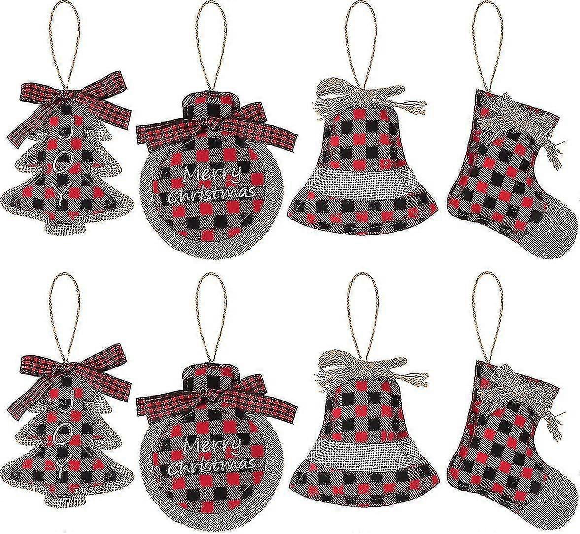 Red and black buffalo checked burlap Christmas decorations, 8 pieces, lightweight, durable and versatile