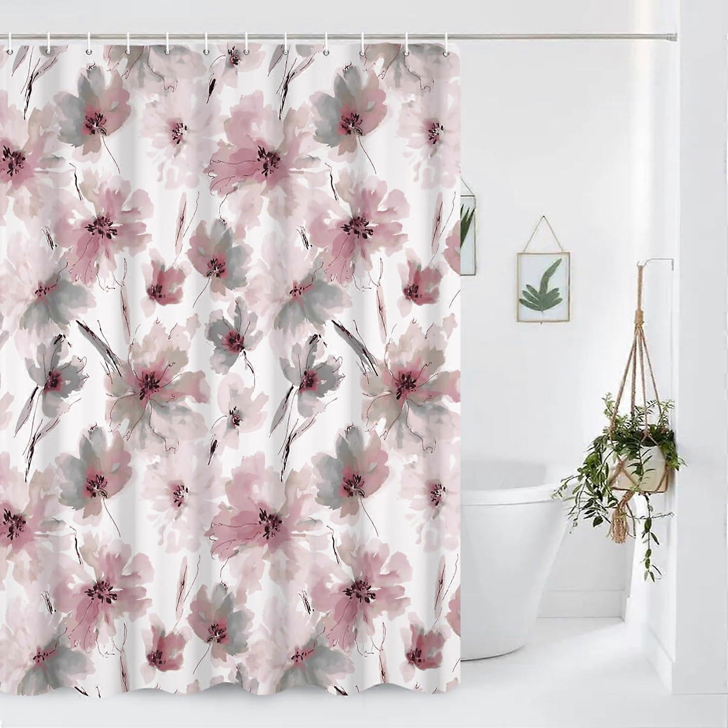 Red Gray Floral Shower Curtain,Pink Grey Flower Shower Curtain Set for Bathroom,Natural Watercolor Flower Fabric Bath Curtain with Hooks, 72x84inches