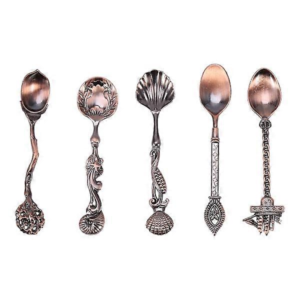 Red copper vintage royal style mini coffee dessert spoons carved kitchen dining room bar cutlery