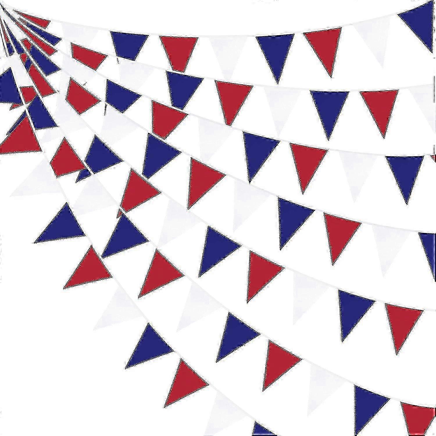 Red Blue White Banner: 32ft Party Decorations Fabric Triangle Flag Bunting Garland