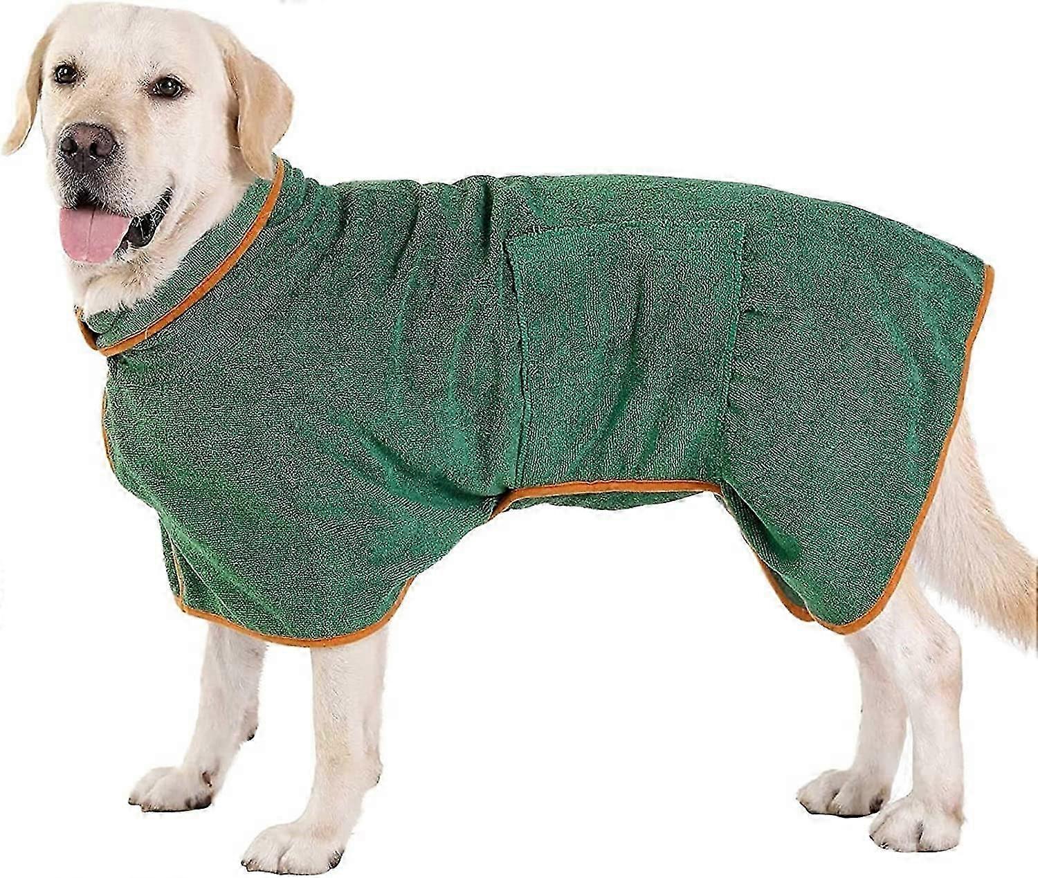 Super Absorbent Microfiber Dog Bath Robe, Quick Dry Towel for Medium Large Dogs (Green, L)