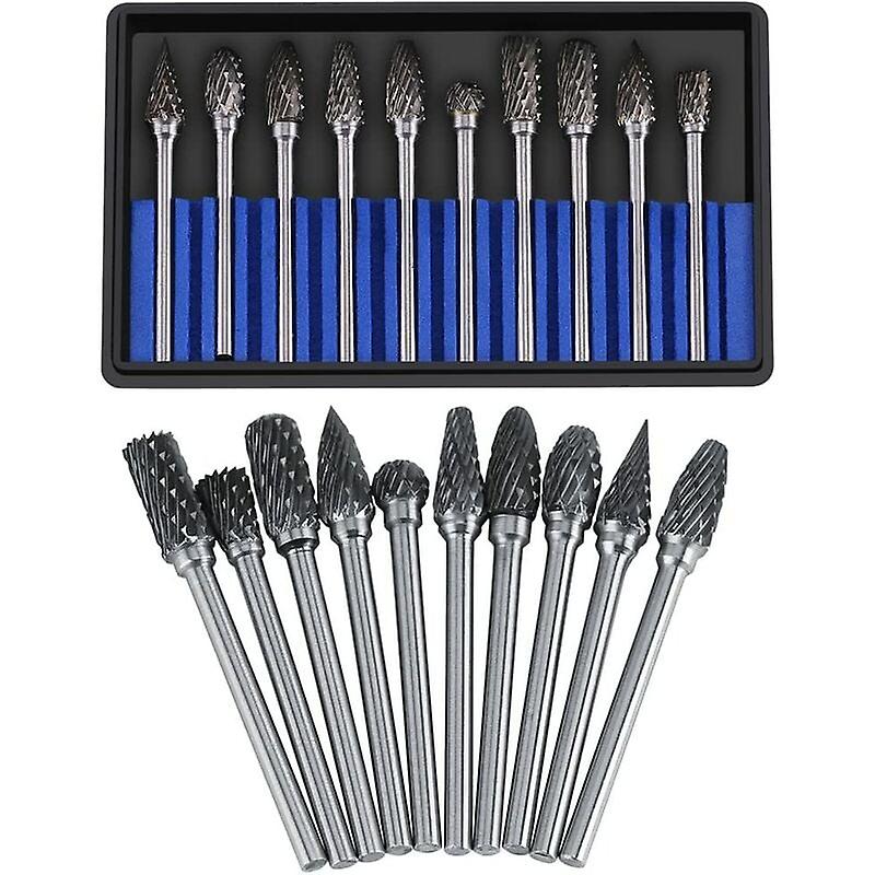 Carbide Burr Set Rotary Files Tungsten Steel 10pcs Cutter Head Diameter for 3mm Shank 6mm Shank Drill Bit Carving Metal Cutting Polishing Engraving Dr