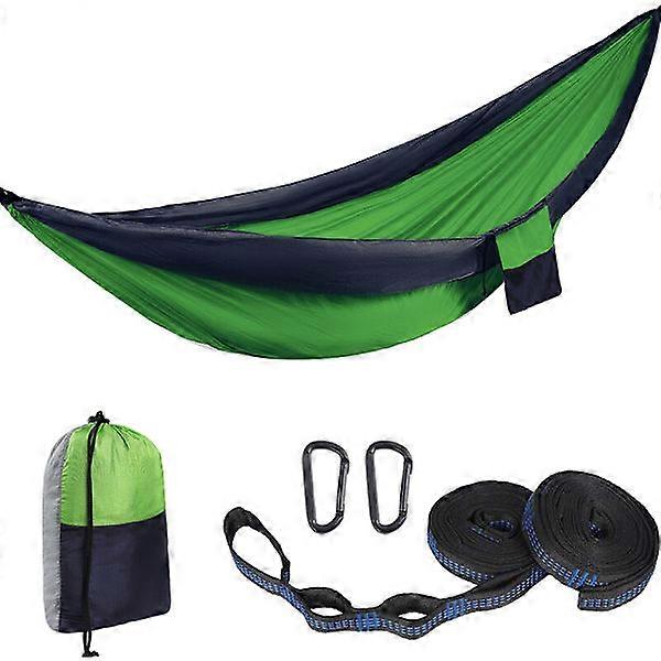 ►ULTRA-STRONG -- Features specially designed ultra-strong nylon end straps. Unique strap design boasts double the breaking strength of most competitors. Military-grade 210T parachute nylon fabric makes for a durable, comfortable, and luxuriously spacious hammock, measuring 275 x 140 cm. More room in this parachute camping hammock. Supports up to 300+ kg. ►SUPER LIGHTWEIGHT, COMPACT -- The stuff sack is conveniently sewn into the hammock so you'll never lose it. Volleyball-sized bundles weigh only about 520g (includes two iron carabiners and nylon slings). Lightweight and small enough to take with you on any outdoor adventure! Made from high-strength nylon with triple stitching, it's breathable, quick-drying, and resistant to rot and mildew. ►Redefine Camping. No need to pack a bulky pillow and a heavy sleeping bag; just put the hammock in the small included stuff sack, toss it in your bag, and go. Once you find the best spot for camping, setup is a breeze. If you need a hammock with a mosquito net, professional hammock straps, and a rain tarp for your outdoor activities, you can find them in our store too. ►TAKE IT EVERYWHERE --Be the hero of your next outdoor adventure by bringing this hammock. Perfect for camping, hiking, day trips, travel, journeys, general exploration, and it's even great in your own backyard... You'll be swinging in total bliss in no time. It also makes a fantastic gift for any nature lover. We guarantee they'll love it as much as you do!