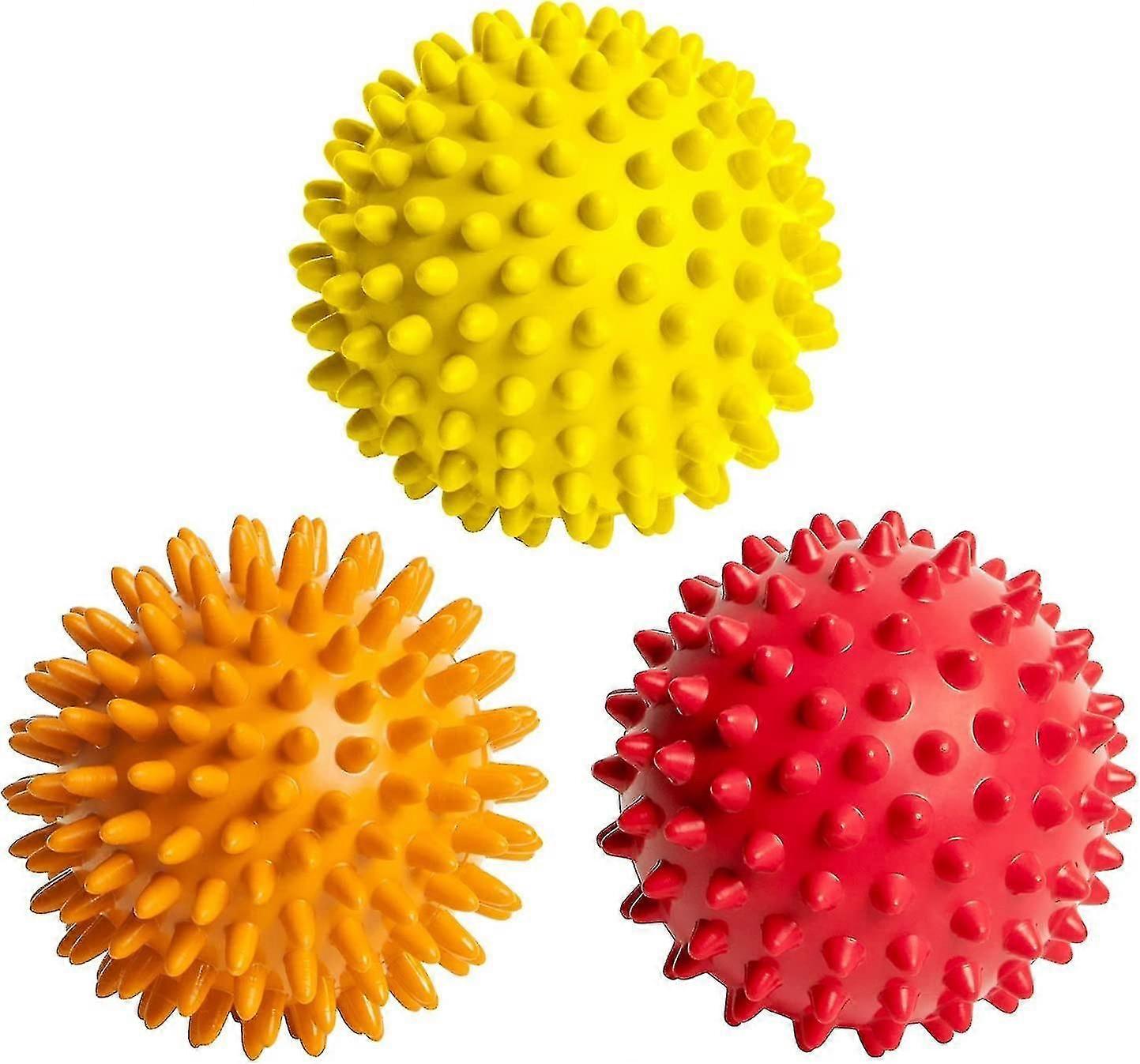 Spiky Massage Balls For Foot, Back, Muscles - 3 Soft To Firm Massager Roller Orb Set For Plantar Fasciitis, Trigger Point Therapy, Exercise, Yoga, Dee