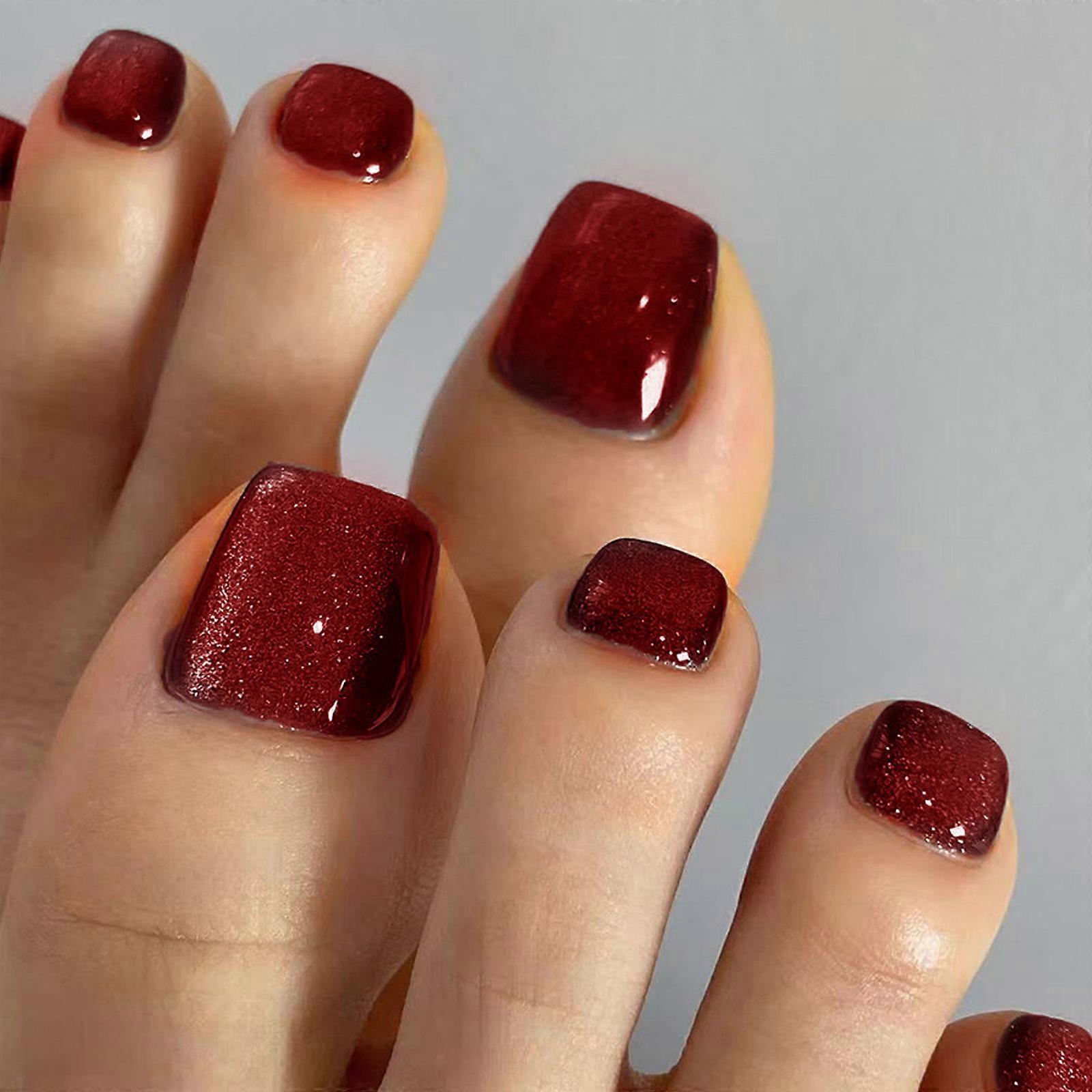 Press On Toenails Short Square Fake Toe Nail French Tips False Toenail Stick on Toe Nail for Women 24Pcs in 12 Sizes
