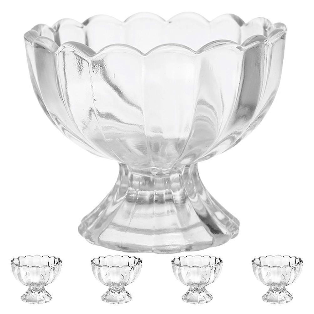 Footed Dessert Bowls Glass Tulip Shaped Transparent Ice Cream Cups For Special Occasions 5Pcs