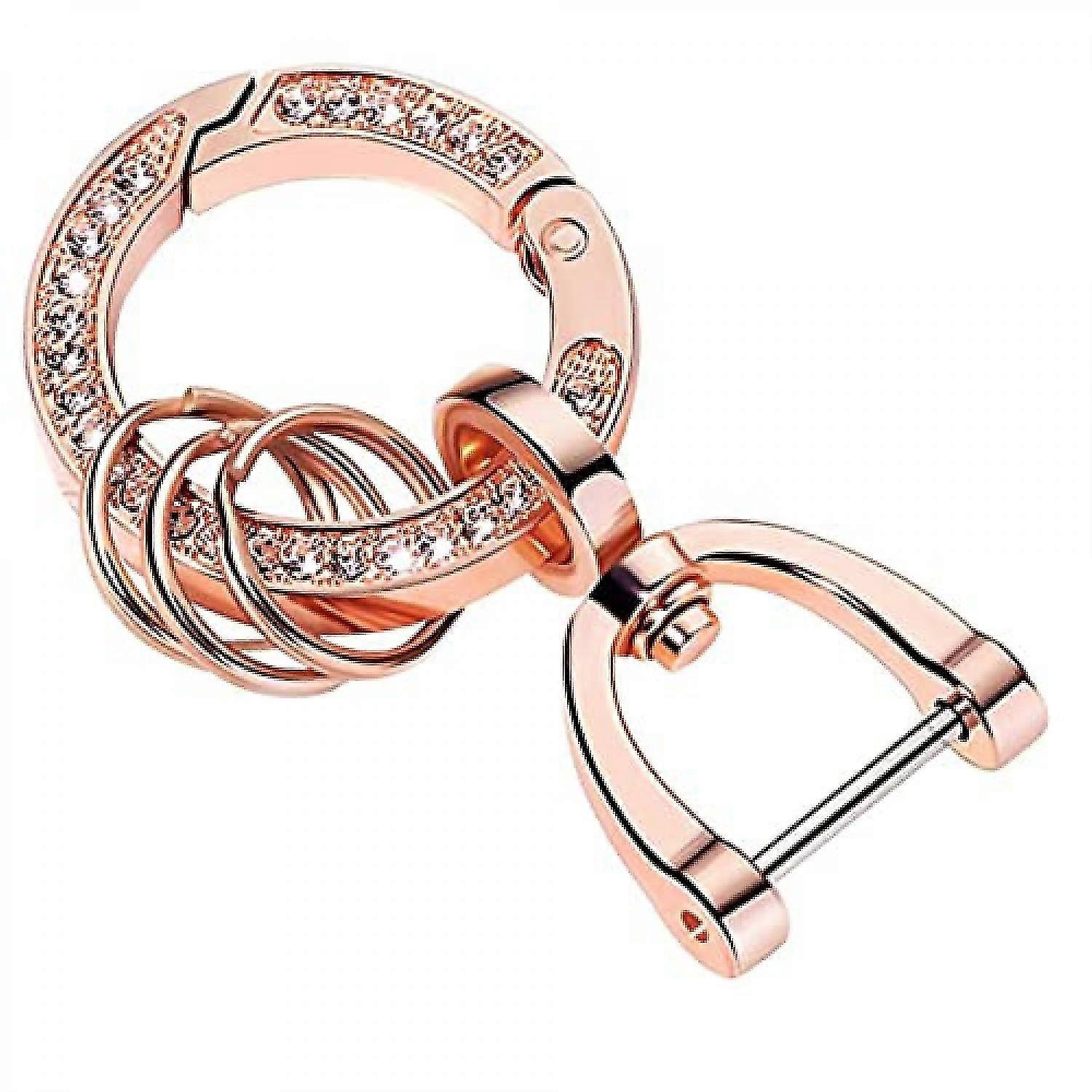 Bling Rhinestone Keychain For Car Key, 14k Gold Plated Alloy Stirrup Buckle Keyring For Women Men, Rose Gold