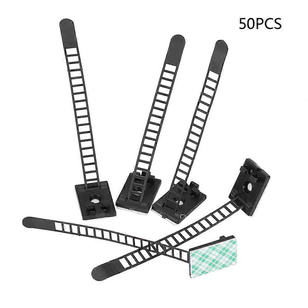 Adjustable clips for car cable organization - 50pcs black self-adhesive1、These clips can used to fixed the wire or cable very easily and quickly 2、Staged adjustable design, can be adjusted according to the cable size and loosen randomly, very practical 3、Self-adhesive base can apply on the smooth surface, such as glass, porcelain, plastic plates, etc 4、Small size and elegant appearance, space-saving, convenient and easy to use 5、Made of high quality plastic and strong adhesive stickers, ultra durable for daily use