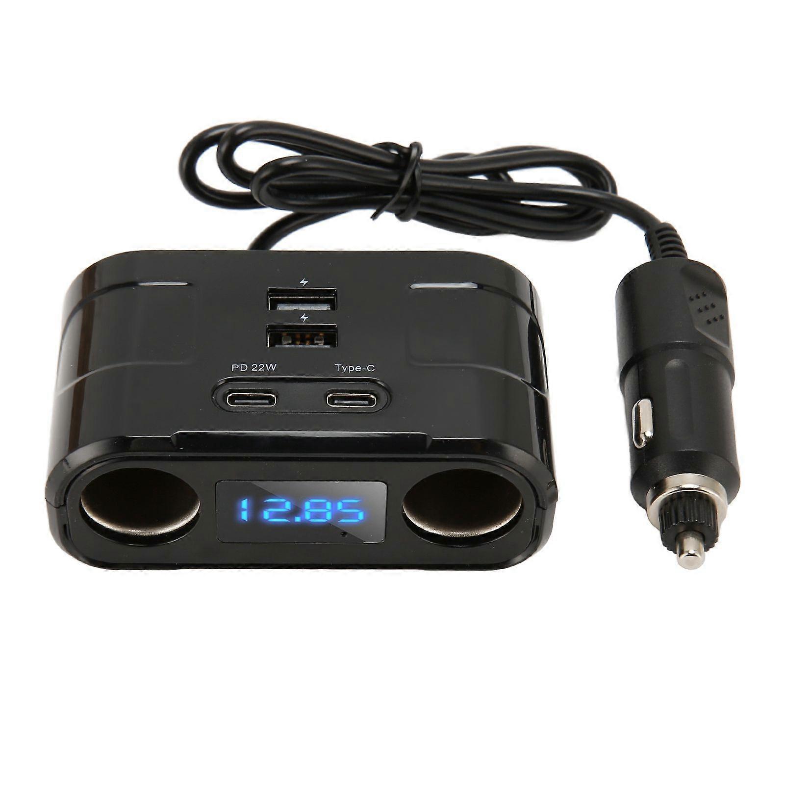 Feature:1. Wide Compatibility: Suitable for 12V24V car models, including cars, SUVs, vans, and trucks, professional and stable design to perfectly meet your needs.2. Multifunctional Design: Includes 2 cigarette lighter sockets, 2 Type C ports, and 2 USB ports, compatible with various mobile phones, tablets, digital cameras, and car electronic products.3. Smart Chip Integration: Equipped with an intelligent chip that supports PD22W fast charging and smart distribution, ensuring safe charging and protecting devices from damage.4. Real Time Voltage Display: Accurate digital display of battery voltage, convenient for checking battery status and troubleshooting abnormal voltage issues.5. Safety Protections: Includes over voltage protection, over temperature protection, short circuit protection, over current protection, and overload protection, ensuring safe and reliable use.Specification:Item Type: Cigarette Lighter SplitterMaterial: ABS, PCOutput Port: USBA, type cTotal Output: 60WOutput Detail: PD: 5V3A/9V2.2A/121V1.68A; (Super fast charging) QC3.0: 3.6-6.5V3A/6.5-9V2A/9-12V1.5A, cigarette lighter 12V-24V/60W.Package List:1 xCigarette Lighter Splitter1 x User Manual