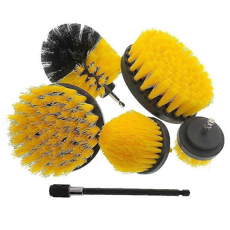 6pcs Electric Scrubber Brush Kit Plastic Round Cleaning Brush Extension Rod For Car Tires Car Clean