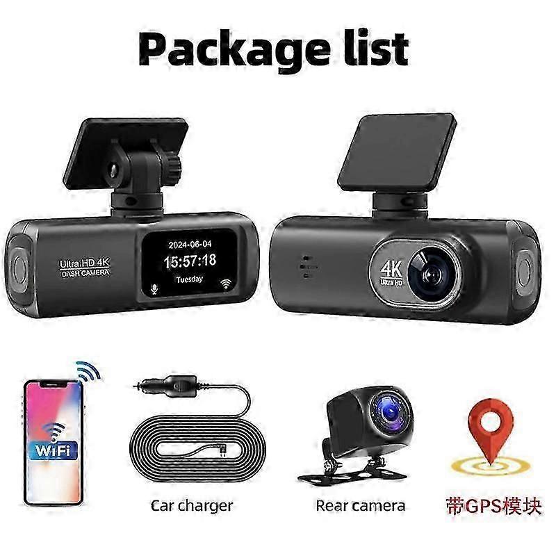 Dash Cam for Cars Front and Rear 4k+1080p, Dual Lens Dashcam with Included 64GB
