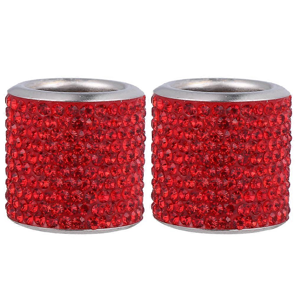 Car Headrest Decor 2Pcs Rhinestone Ring Accessories Stylish Appearance Red Circular Design For Women Car Interior Decoration