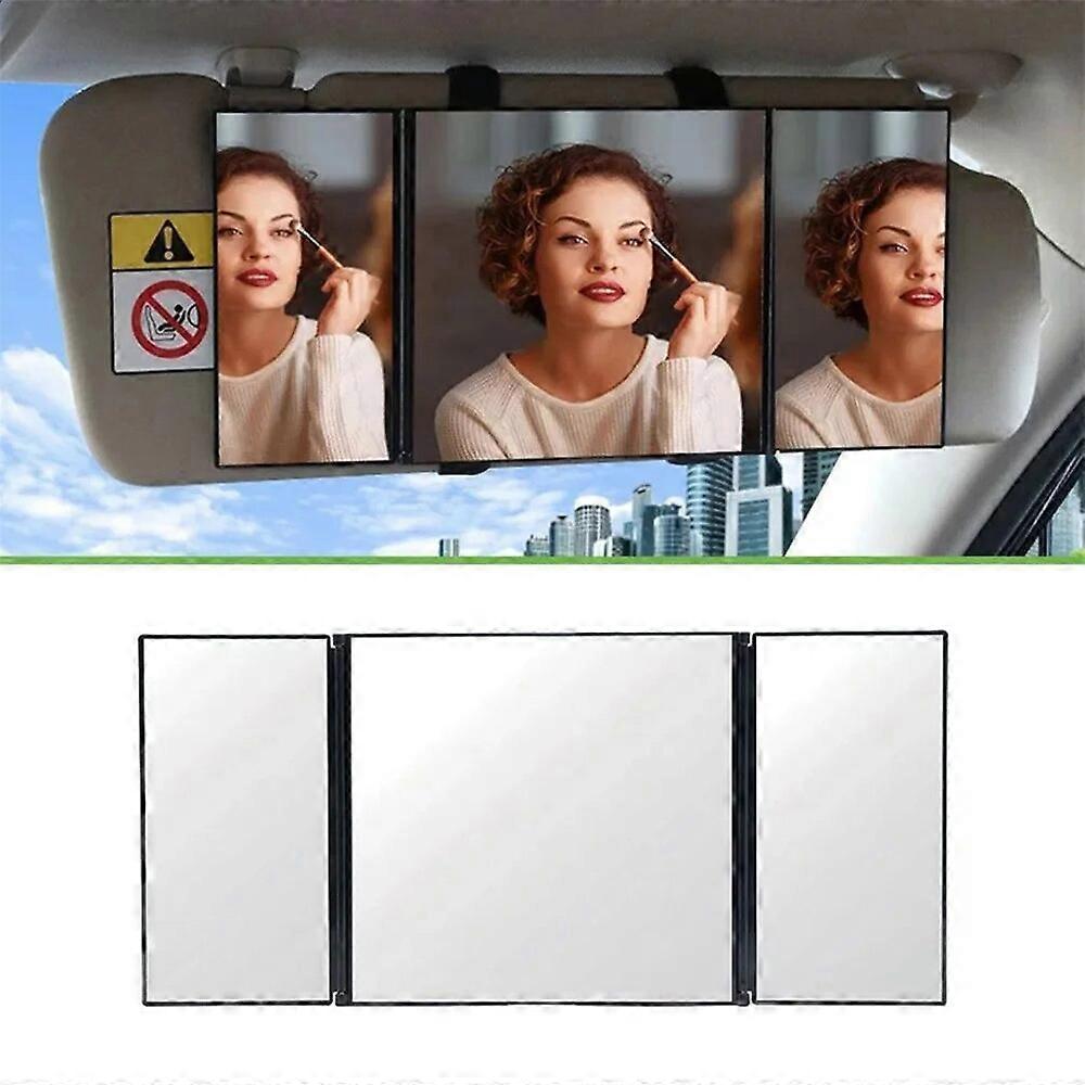 Car Makeup Mirror 3 Section Folding Cosmetic Mirror Auto Sun~shading Car Visor Mirror Adjustable Auto Cosmetic Mirror FN9U8026