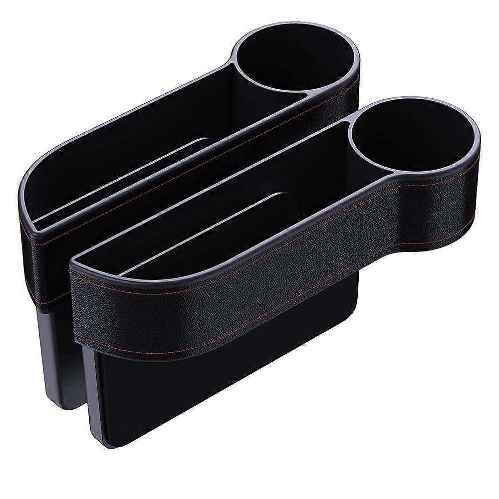 Careful Design: Car seat gap filler with cup holder prevents things from falling through the car seat gap and provides extra storage space so you can enjoy your journey on the road. The soft sponge of the car tool front seat is non-slip and scratch-resistant. The bottom of the car seat organizer is designed with a hole. You can use the charging cable conveniently. Our front seat cushion consists of two separate parts, which can help you perfectly organize the placement of keys, cards, mobile phones and other items. The package includes one that allows you to attach the seat gap storage box without worrying about it falling or sliding. Easy installation and cleaning, just insert two seat gap fillers directly between the seat and the console. Our high-quality storage box is waterproof and wear-resistant. You can easily wash with water when dirty. Perfect Size Car Seat Gap Organizer Box: This car storage box can help you create a clean and tidy environment. The 2 pieces of car seat organizer can effectively increase your car's storage space. The car seat gap organizer is not suitable for cups larger than coke glasses. Product details Material: plastic Colour: black
