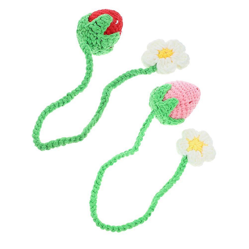 Car Hanging Ornament Rear View Mirror Accessories Adorable Strawberry Design Yarn Car Decoration 2Pcs
