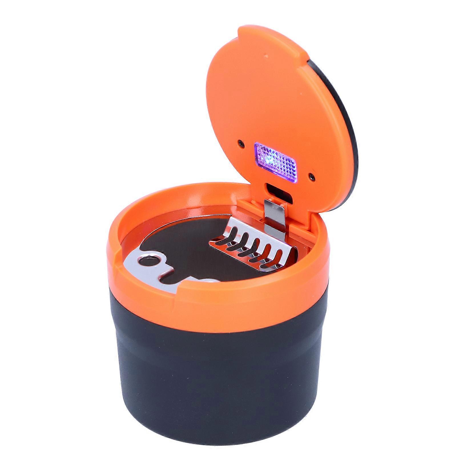 Car Ashtray Stainless Steel Container Smokeless Blue LED Light with Builtin Battery Universal(Orange )