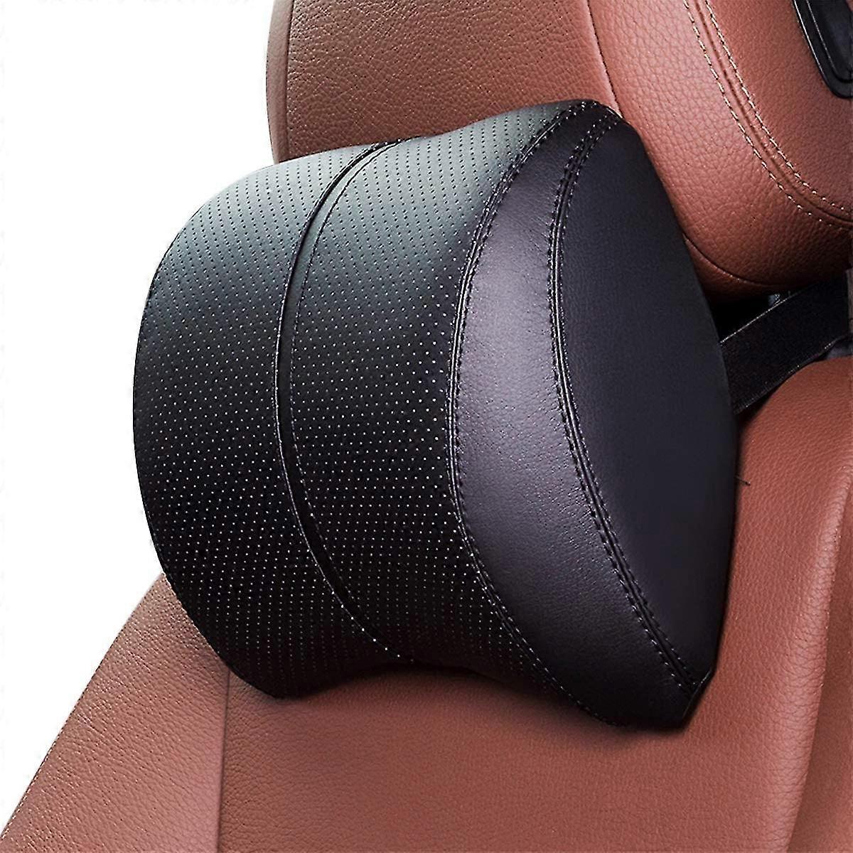 Car Lumbar Cushion Support & Headrest Neck Cushion Cover Pu Leather Memory Foam Pillow For Car Home Chair (black, Neck Pillow)