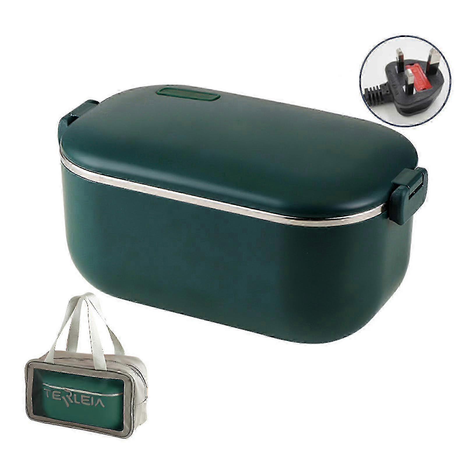 Portable Leak-Proof Electric Lunch Box Heater with Bag for Car/Home - UK Plug, Green
