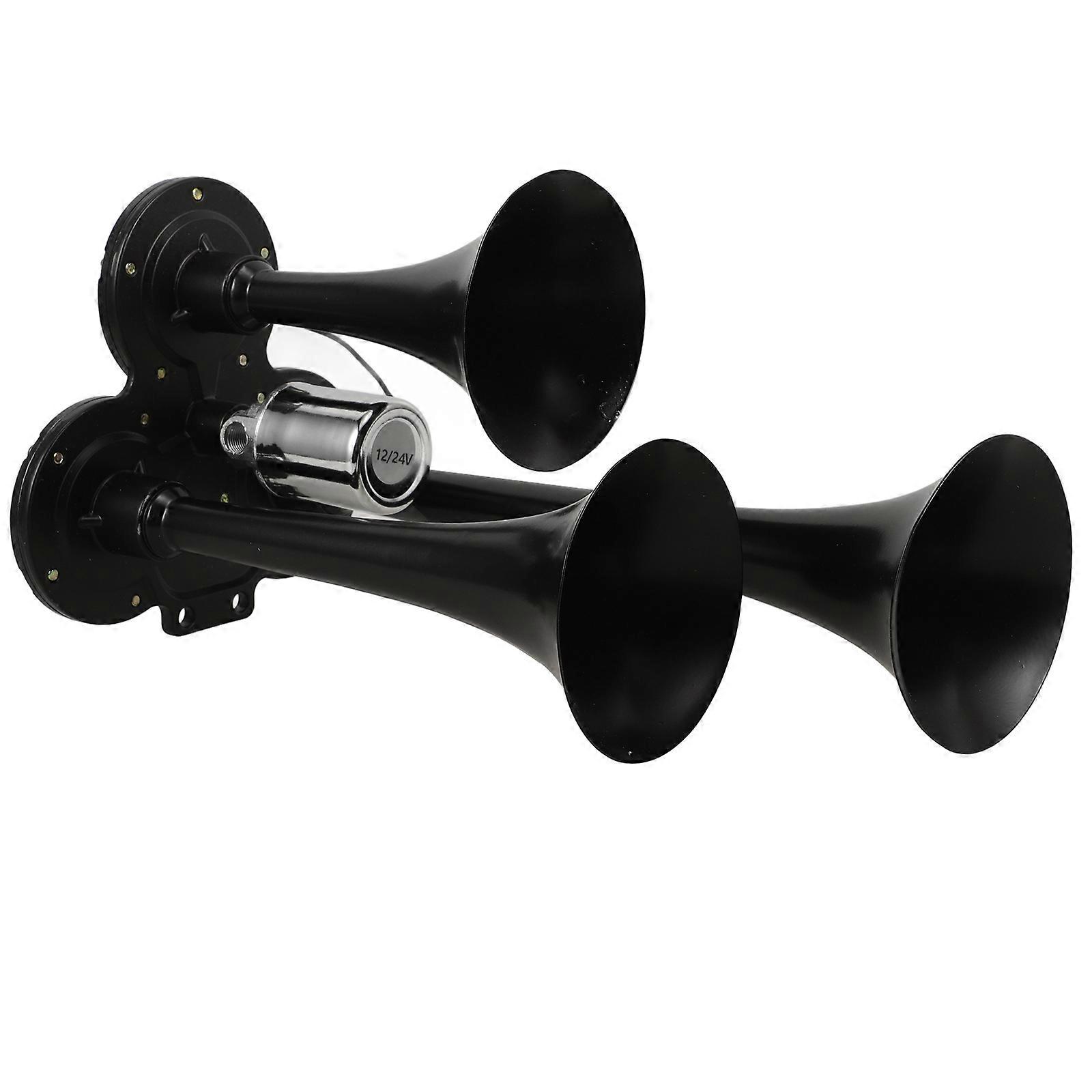 Loud Train Horn with Triple Trumpets for Car Use Black Zinc Alloy 12v 24v Compatibility