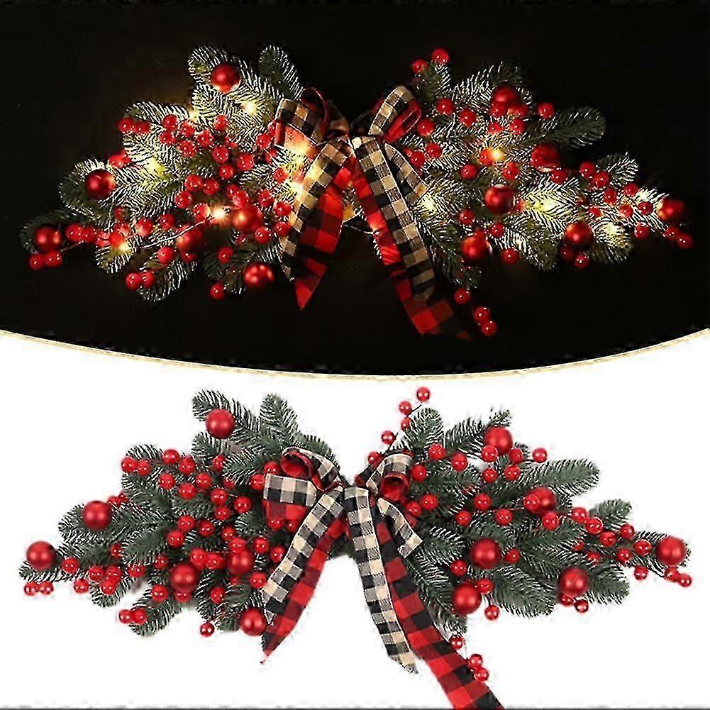 Christmas Swag with Light Artificial Christmas Swag Decoration with Ribbon Bow