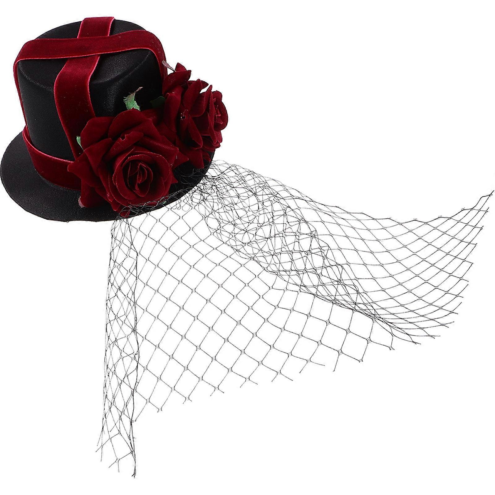 Elegant Cross Strap Rose Mesh Party Hat For Adult Girls And Boys Suitable For Halloween Celebrations With Lightweight Design 1 Pcs