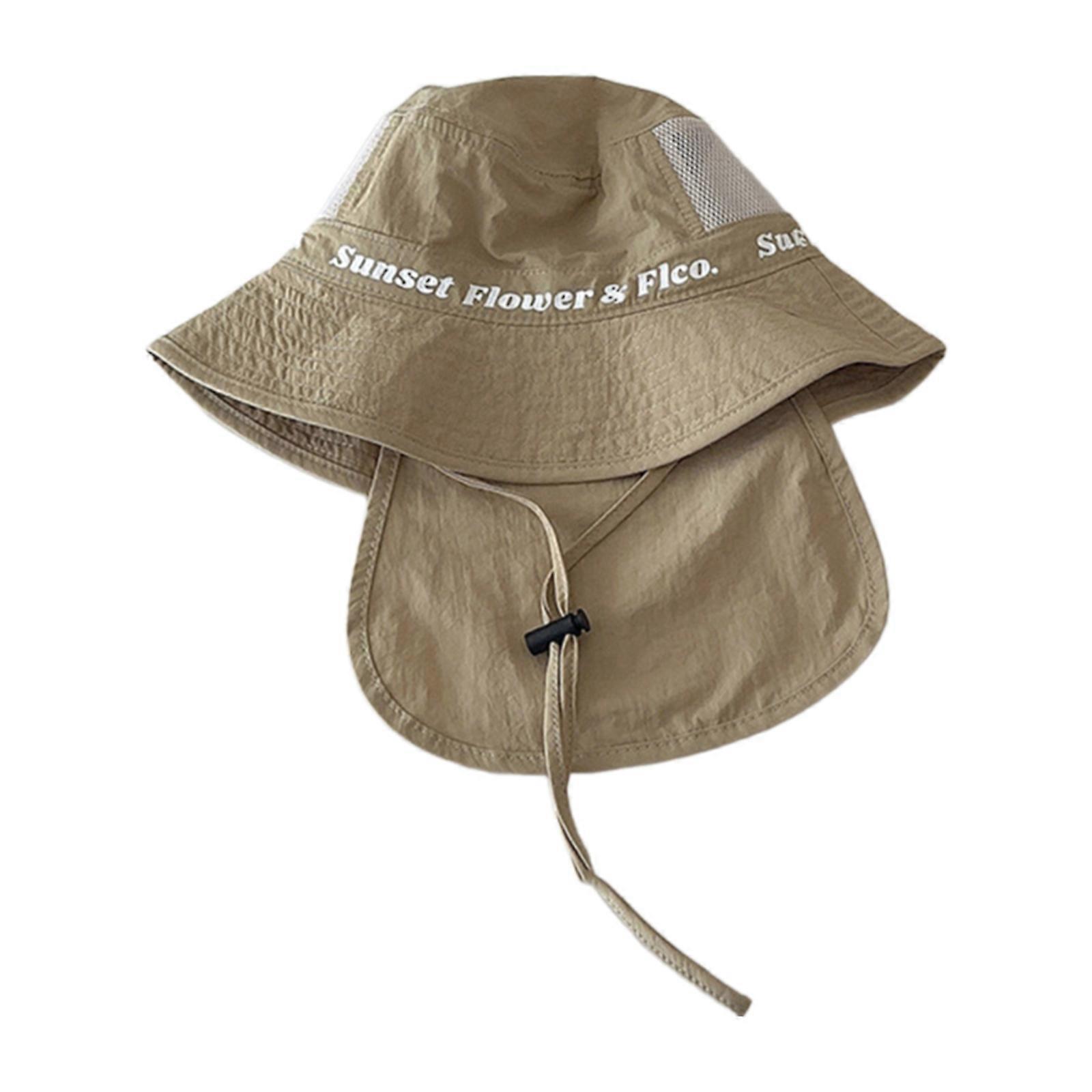 Lightweight Neck Protect Bucket Hat Breathable Quick Drying Wide Brims Bucket Hat Kids Hot Day Spring Fisherman Hat Khaki