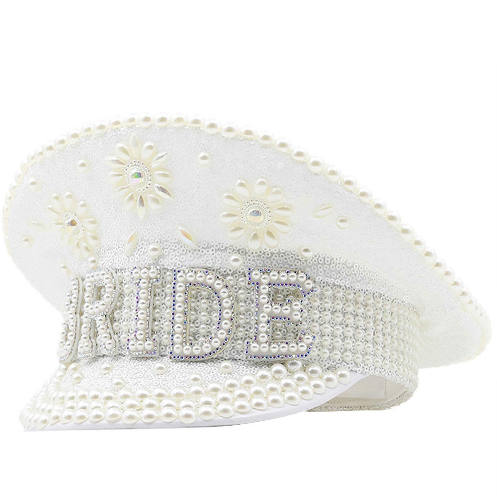 Sparkling Diamond Bride Hat Wedding Props White Sequins and Encrusted Pearls for Wedding Engagement Bachelorette Party White