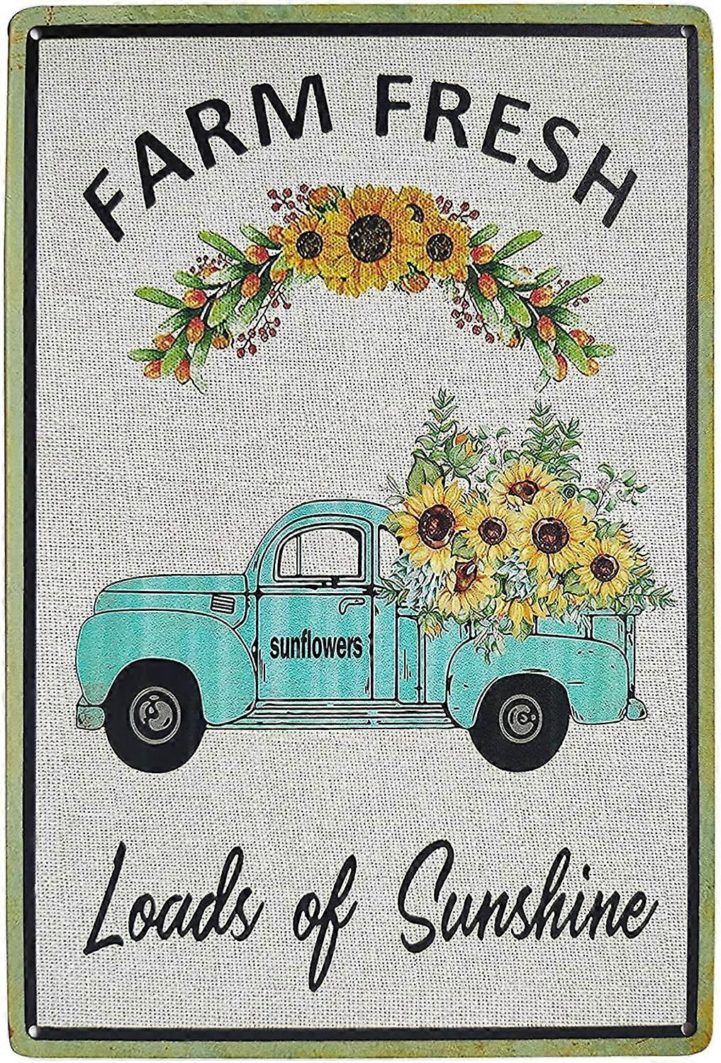 Farm Fresh Sunflower Vintage Metal Tin Sign Funny Green Truck Rustic Farmhouse Decor for Living Room Bedroom Decoration 8X12Inch