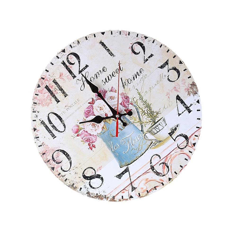 Farmhouse Wall Clock Multi Color Round Wooden Clock European Style Silent Battery-Operated For Living Room 1Set