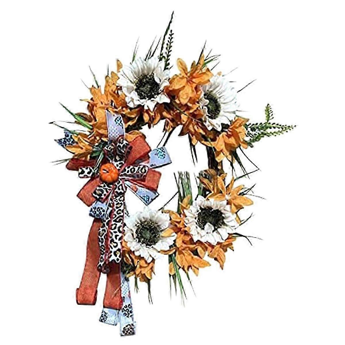 Farmhouse Autumn Decor Wreath for Front Door - Rustic Pumpkin Flower Hanging Art Ornament - Fall Ch