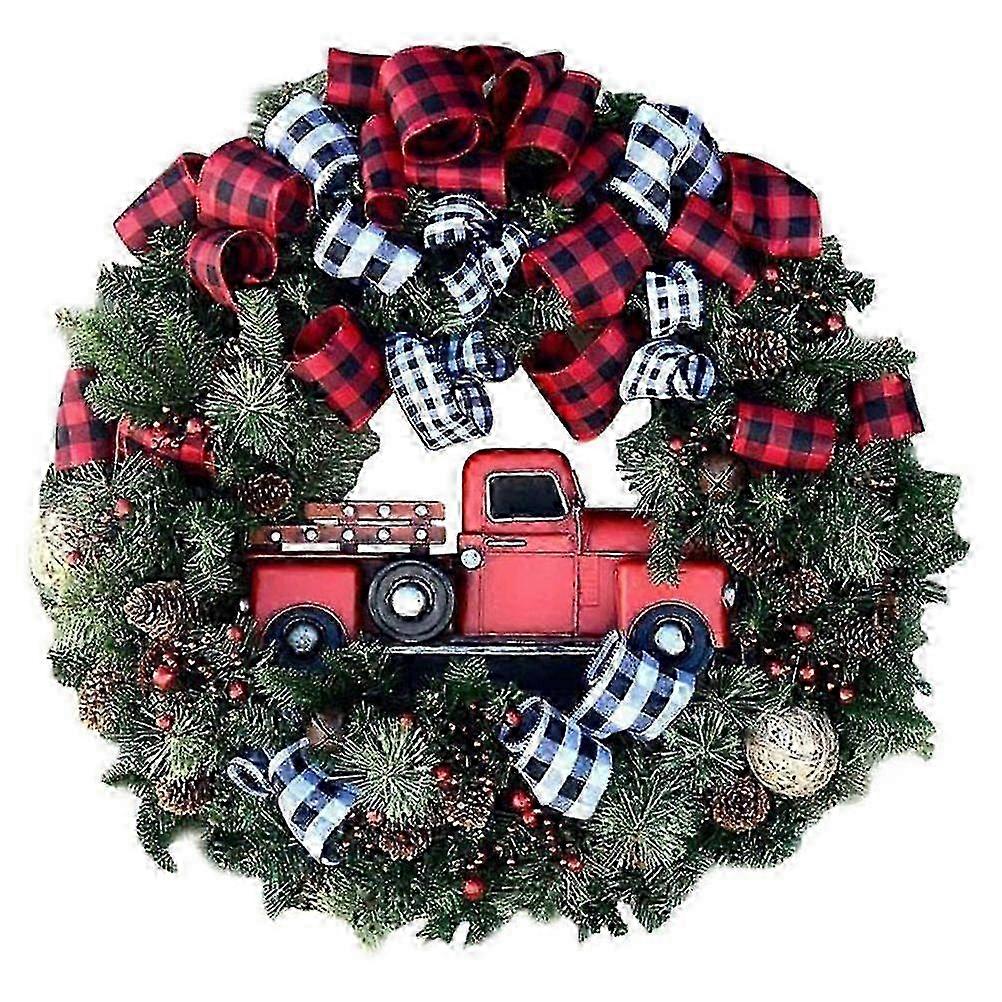Farmhouse Red Truck Christmas Wreath Front Door Wall Hanging Decoration Multipurpose Pine Cone Garland