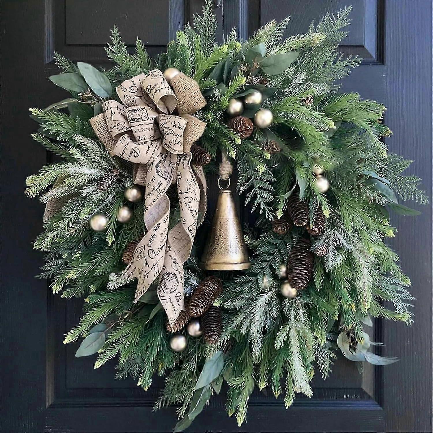 Farmhouse Christmas Wreath, 40x40cm Holiday Door Decoration, Festive Garland for Front Door