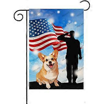 退役軍人の日コーギーガーデンフラッグ垂直28x40インチ記念日、7月4日、退役軍人の日パトリオ