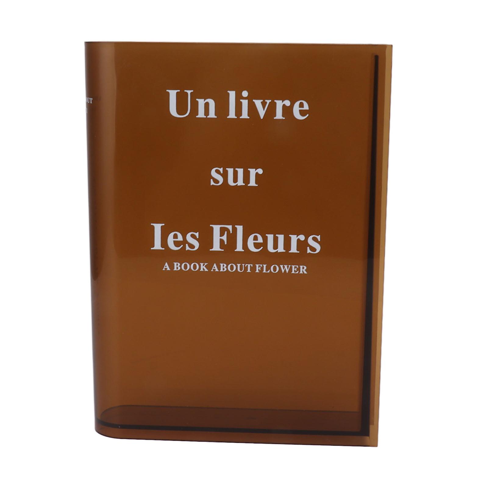 Clear acrylic decorative book-shaped vase, ideal for home, living room or office, brown