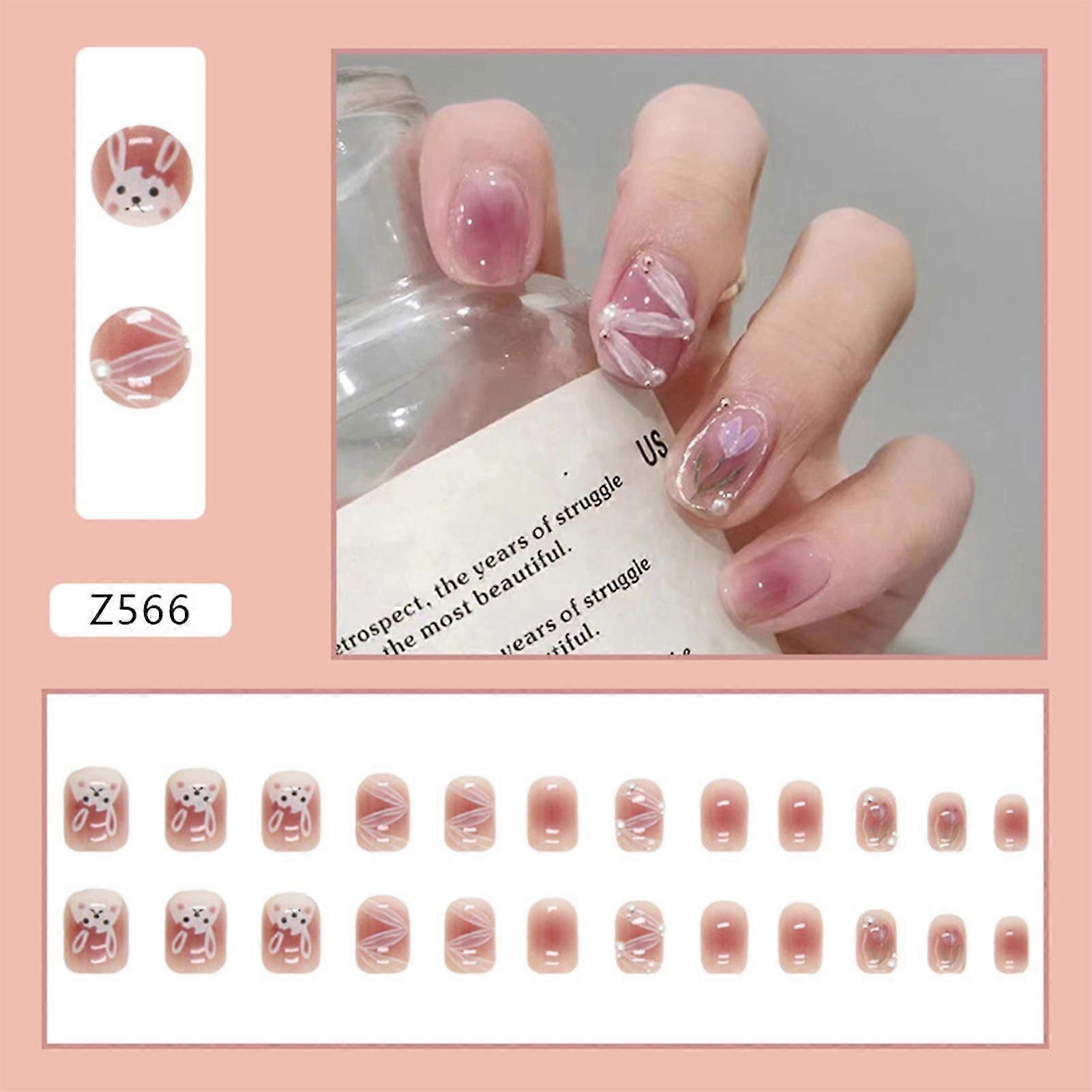 Transparent Tulip Flower Fake Nails Chip-proof Smudge-proof Fake Nails Glue Models