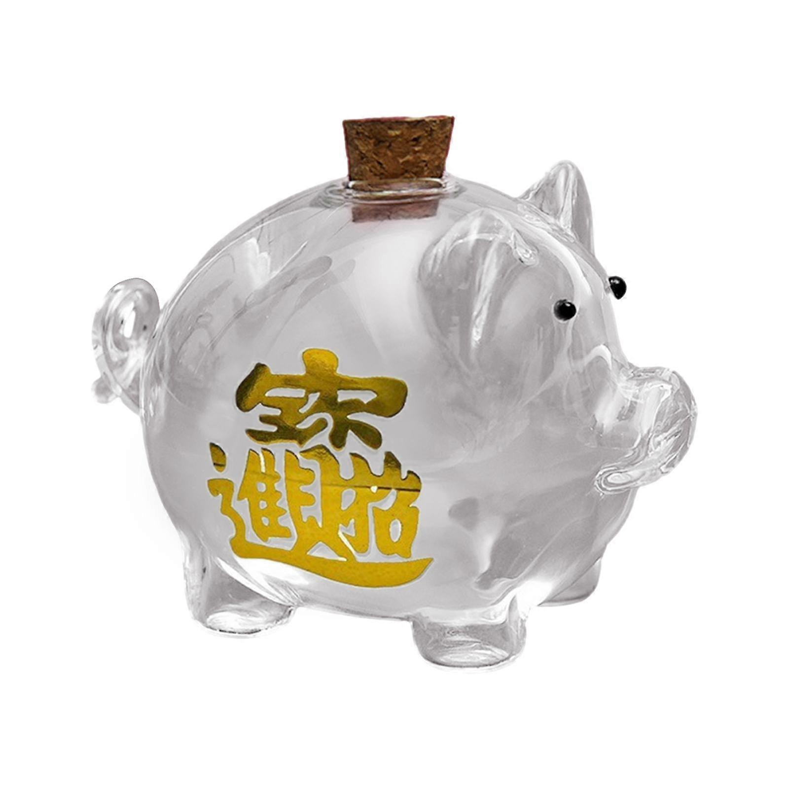 Transparent Piggy Bank Glass Pig Figurine Craft Souvenir Home Decoration Banknote Case Saving Box for Table Cafe Bedroom Boys