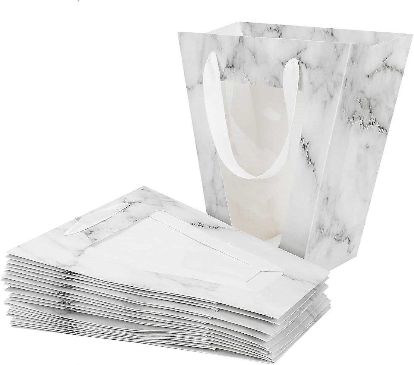 10pcs Paper Party Bag With Clear PVC Window Paper Gift Bags With Handle Dolls Toys Carrier Bag Flower Bouquet Gift Bag for Birthday Valentine Christma