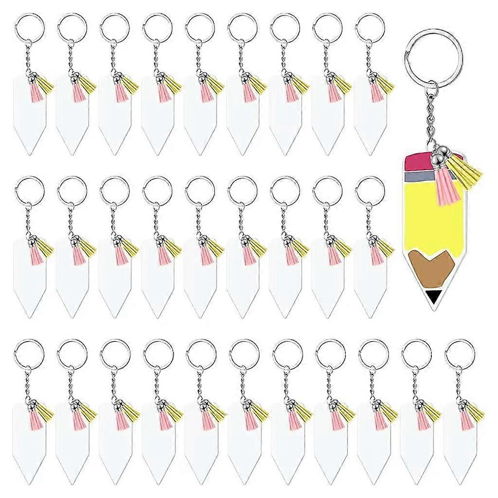 Clear Acrylic Keychain Blanks Leather Tassels Keys Chain Rings for DIY Tags