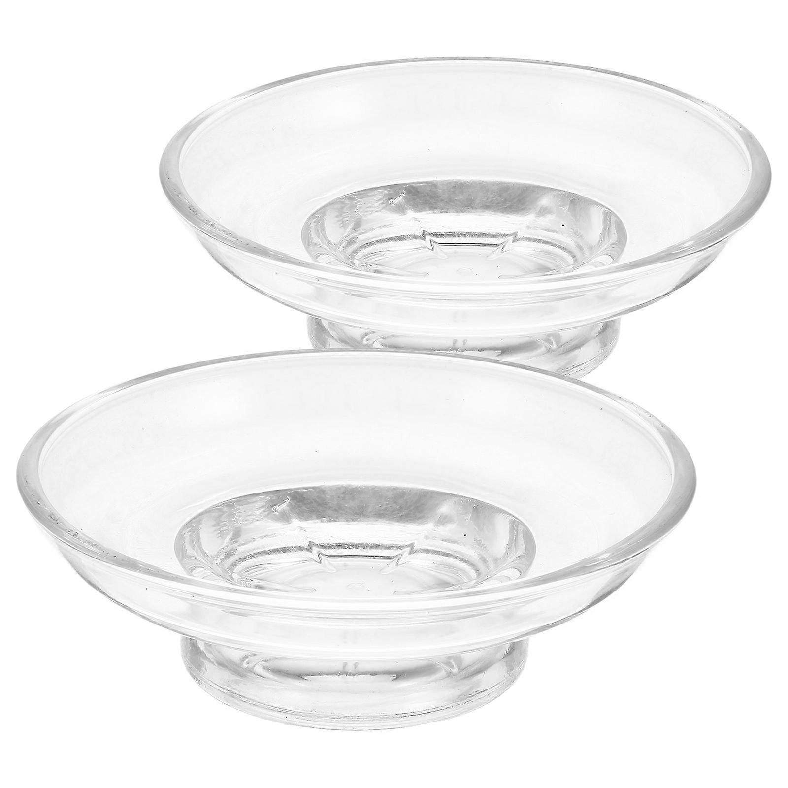 Clear Glass Soap Dish Self Draining Holder for Bathroom & Kitchen Use, Transparent Round Design for Soap, Jewelry, or Sauce