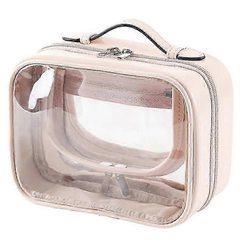 [180 Degree Large Opening Design]: with double zipper large opening design, the upper and lower layers, easy to take, easy to load your so cosmetics or toiletries. Each layer has a zipper opening to prevent the products inside the bag from falling out or messed up. [Waterproof Material]:The makeup bag is made of waterproof TPU material and Pu leather material, waterproof and dustproof, odorless, whether used as a makeup bag or storage toiletries can play a good role in protection. [Visualization Design]: transparent bag body and the upper and lower layered design, you can easily find the cosmetics or toiletries you want, effectively solving the trouble of finding cosmetics when traveling outside! [Detail Design]: built-in small zipper pockets, one on the top and one on the bottom, you can store lipstick and eyebrow pencil and other small things, you can easily take it anywhere, anytime. Cosmetic bag body with a handheld strap, l times travel can easily carry. Exquisite hardware zipper, open and close smoothly, strong and durable. [Excellent Gift]: Makeup bag 8.3 x 4.3 x 5.9 inch (21 x 11 x 15CM) size to meet needs. Guaranteed to be a novel all occasions, including friends, family, men, women, bridesmaids, birthdays, holidays, etc. size: 21 x 11 x 15cm Material: PU colour: pink Package Contents: 1 x Makeup bag Only the above package content, other products are not included. Note: Light reflection and different displays may cause the color of the item in the picture a little different from the real thing. The measurement allowed error is +/- 1-3cm.