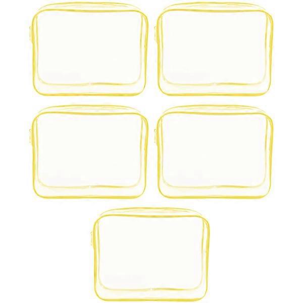 5-pack Transparent PVC Zipper Toiletry Bags, Portable Cosmetic Bag for Vacation, Bathroom and Organization (yellow, medium)