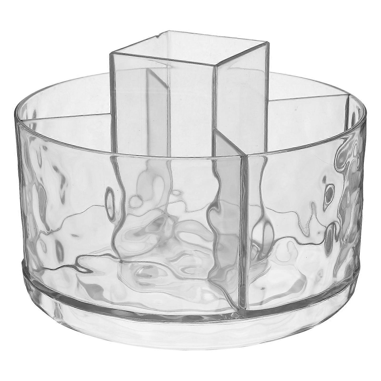 Transparent PET Makeup Brush Holder with Compartment Design for Desktop Storage 360° Rotatable