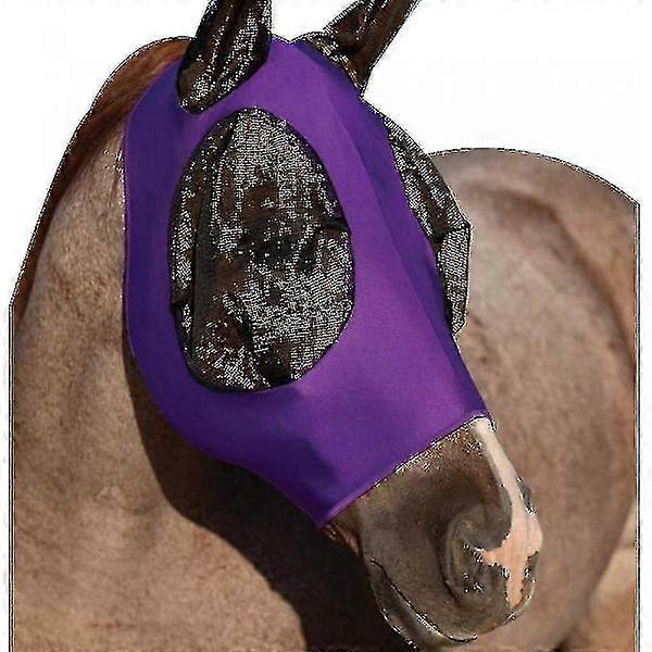 Breathable Horse Fly Mask Mosquito and Insect Repellent Horse Hood (Purple)