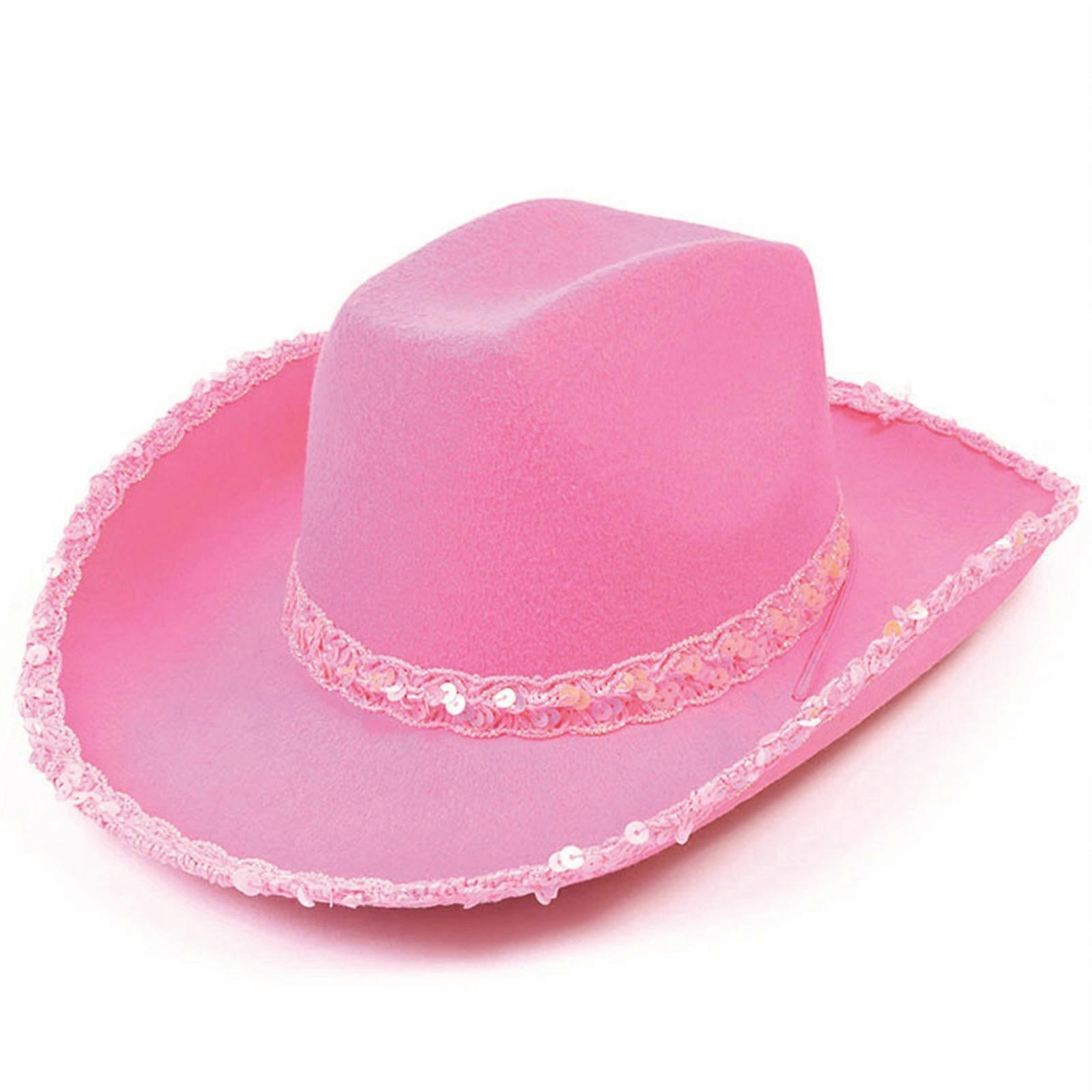 Breathable Solid Color Western Hat for Women Men Thick Cowboy Hat with Sequins Brim Jazz Felt Hat Wedding Party Hat pure pink