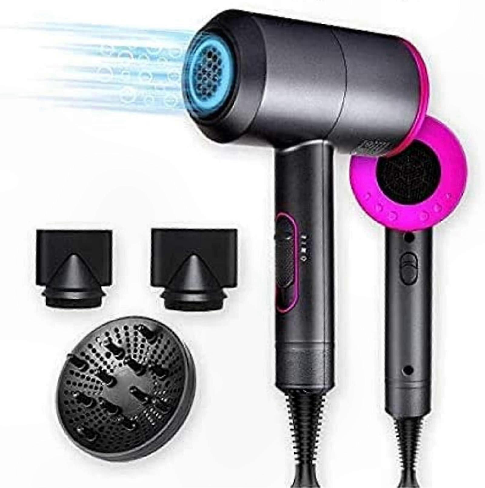 Color: Iron Grey & Rose Red Material: Plastic, Acrylonitrile Butadiene Styrene Wattage: 2000 watts Power Source: Corded Electric 2000W professional hair dryer with strong wind power for fast drying, suitable for thick and wavy hair. Lightweight and portable design for easy carrying and storage. Includes 2 concentrator nozzles and 1 diffuser. The concentrator nozzle is ideal for precise styling and smooth results, while the diffuser helps enhance natural curls and waves for a voluminous, defined look. Equipped with 1 speed knob and 3 heat settings to provide full control over drying and styling, allowing customized results at home. Features constant temperature protection with automatic shut-off when overheating occurs. Emits a high concentration of negative ions to improve hair shine and softness, reducing frizz and static. Intelligent noise reduction design ensures quieter operation. Compact and lightweight, ideal for home, travel, or salon use. A thoughtful gift for family and loved ones on occasions such as birthdays, Valentine's Day, Mother's Day, and Christmas.