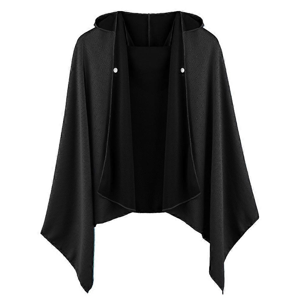 Quick Dry Summer Cooling Beach Shawl Sweat Absorbent Sun Protection Outdoor Hooded Poncho - Black