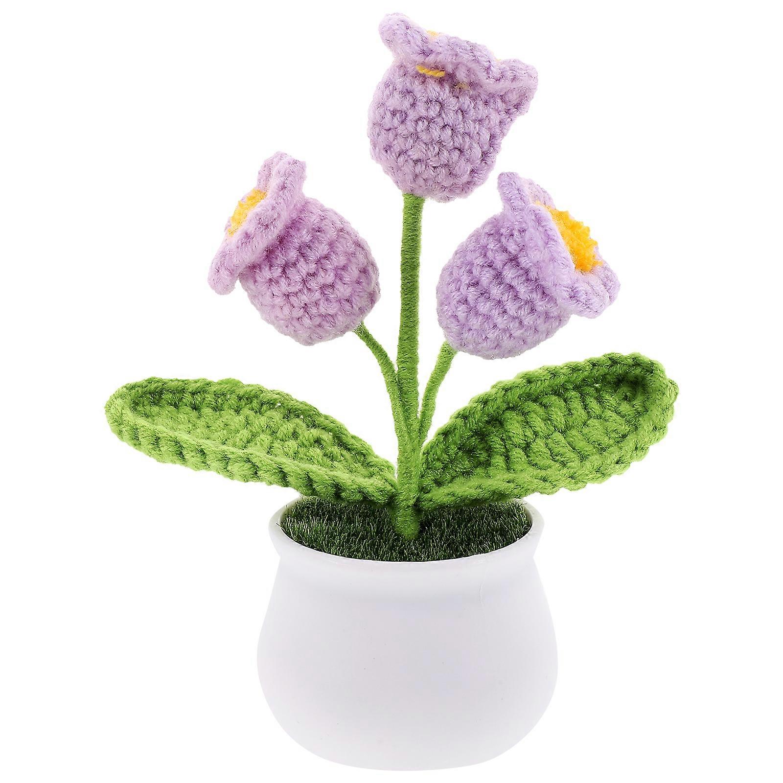 Artificial Crochet Flower Decor Potted Crochet Flower Adornment Party Purple 5.5X10.5X14CM Friends 1Pack