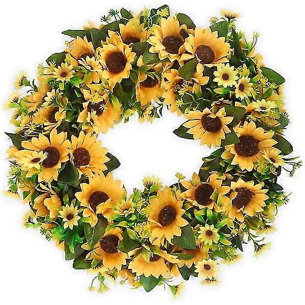 Artificial sunflower wreath 45 cm summer autumn large wreaths spring round flower green leaves