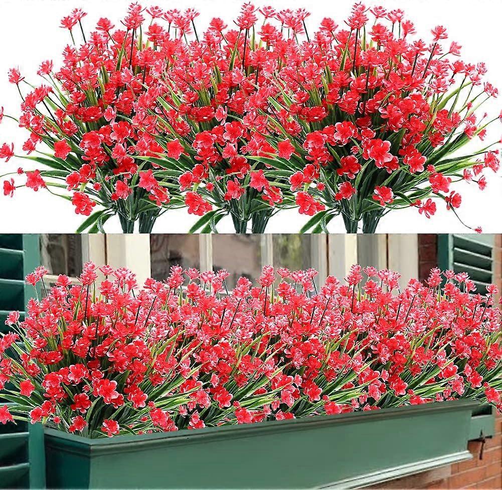 Artificial Outdoor Flowers, 8 Bundles Fake UV Resistant Foliage Greenery Faux Plants Shrubs Plastic Bushes for Indoor Outside Hanging Planter Wedding