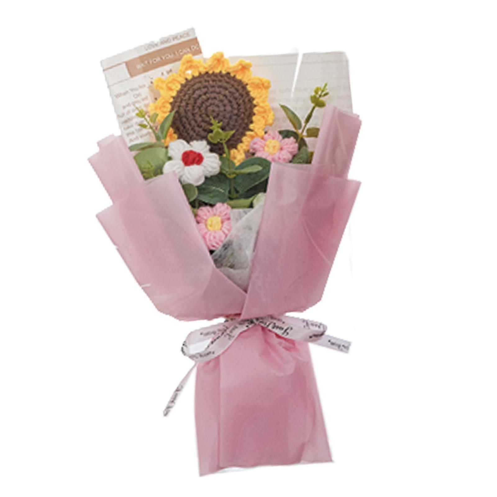 Artificial Flowers Birthday Gift with Light Finished Product Knitted Bouquet Light Pink Flower